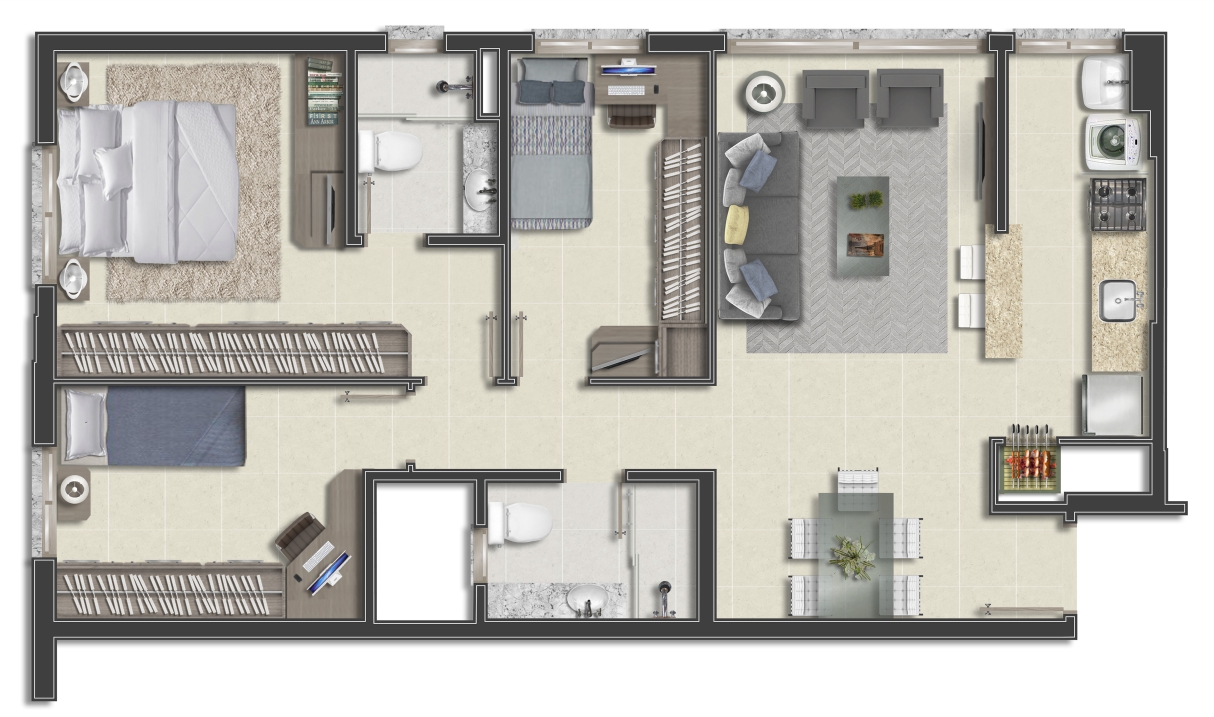 3 dormitórios | 76,40 | 1 e 2 vagas